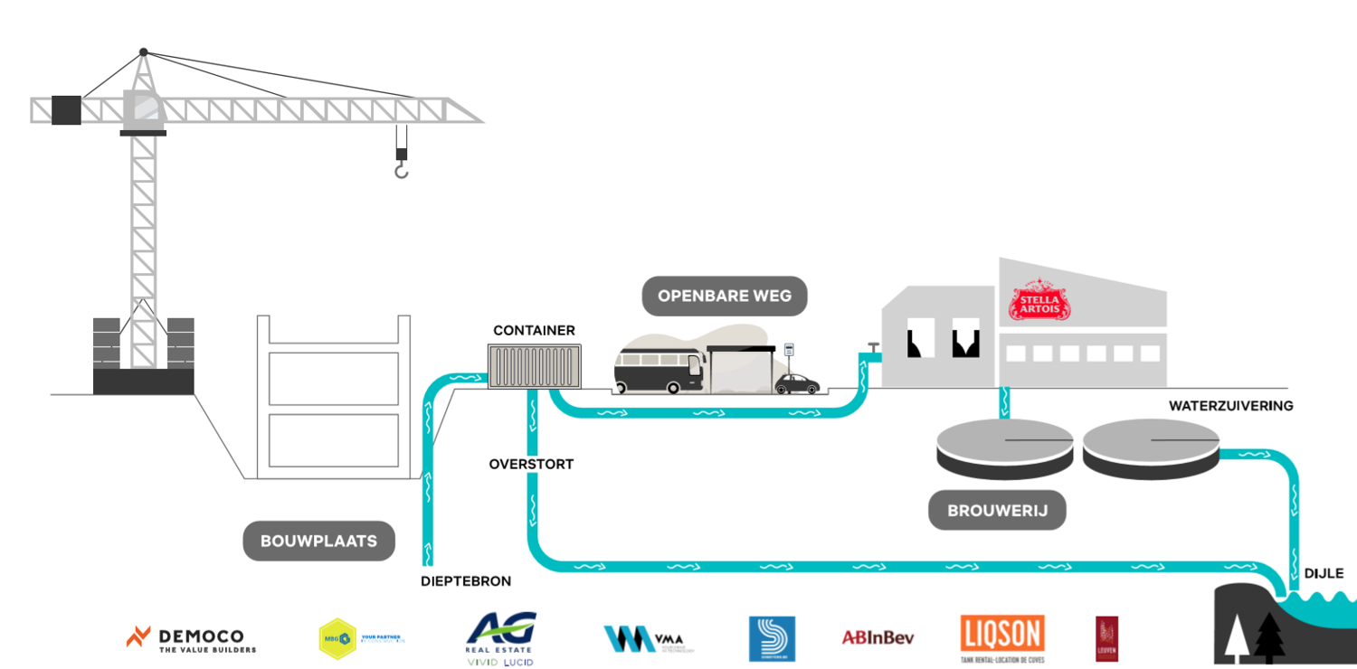 Bouwbedrijven MBG en Democo pompen straks werfwater van de residentiële projecten Vivid en Lucid van vastgoedontwikkelaar AG Real Estate in Leuven via ondergrondse leidingen naar de naburige Stella Artois-brouwerij. “Normaal gezien zou het water in de Dijle worden gepompt, maar nu zal het dienen voor de technische verwerkingsprocessen van de brouwerij. Een veel duurzamere oplossing”, klinkt het.