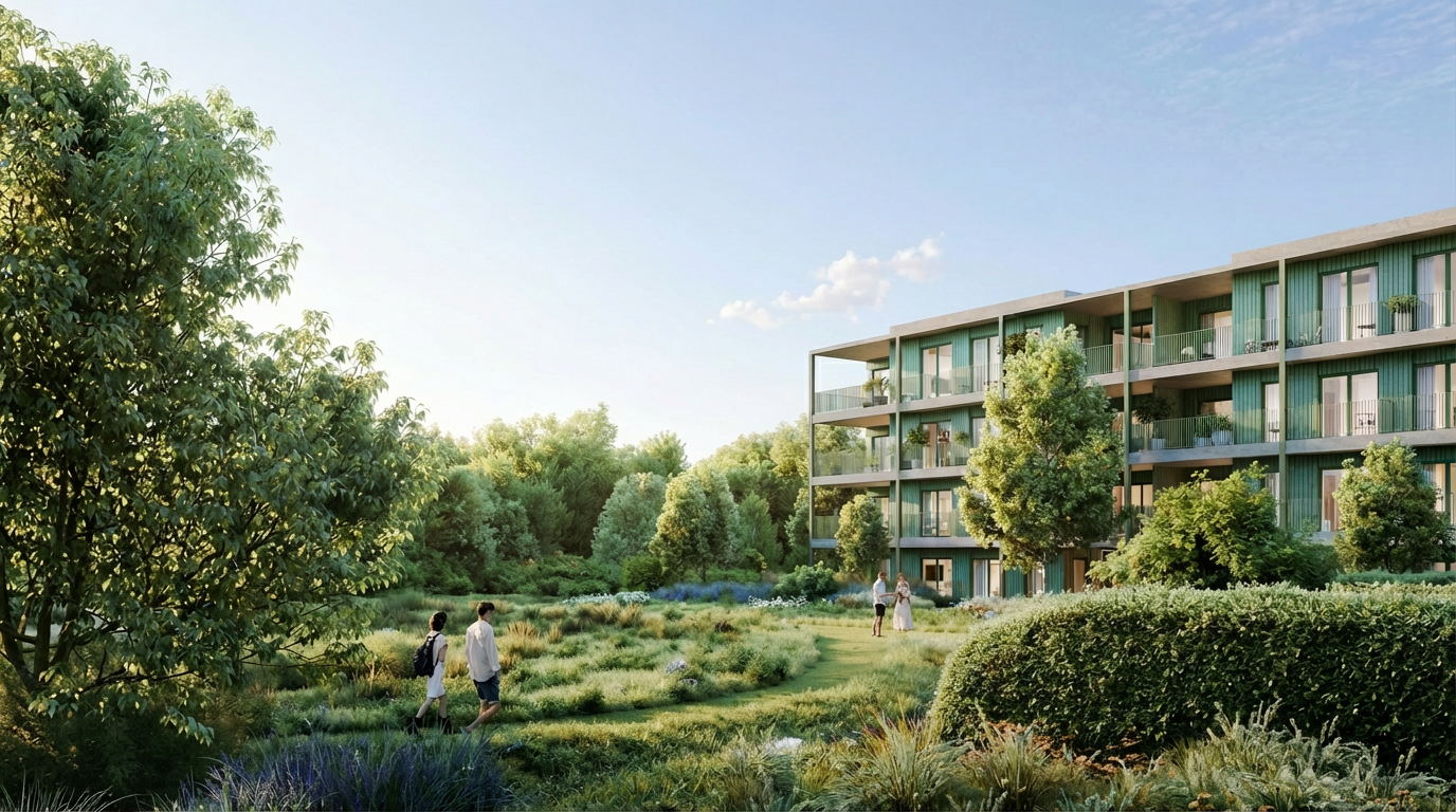 Met de aangepaste plannen legt CORES Development nog sterker de nadruk op integratie in de groene omgeving. Waar het terrein vandaag volledig privatief en afgesloten is, wordt het in de toekomst een open en groene ontmoetingsplek voor de buurt. Wandelpaden, zachte verbindingen richting Immerzeeldreef en een biodiverse inrichting moeten het park toegankelijk en aantrekkelijk maken voor omwonenden, scholen en jeugdverenigingen.