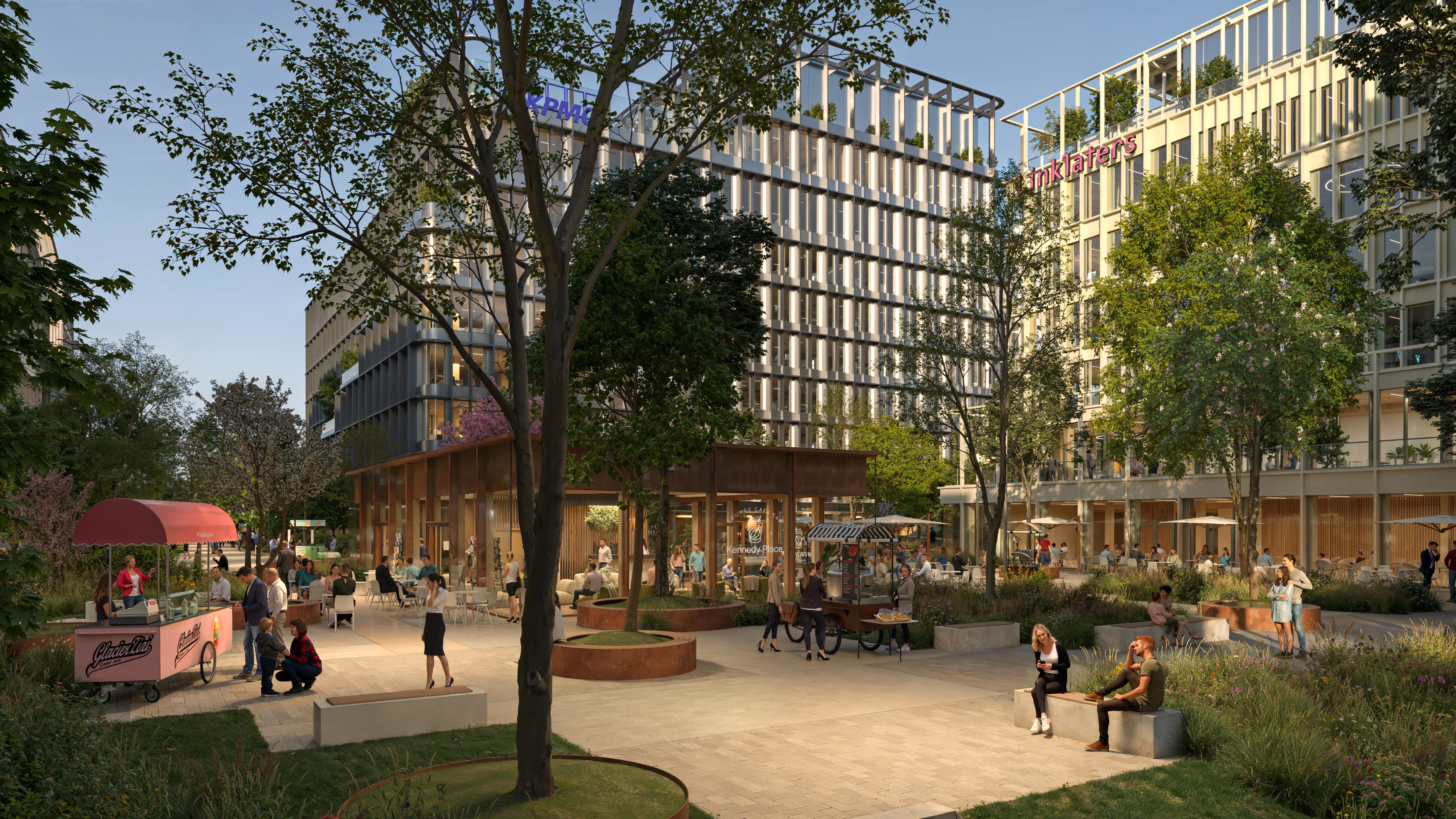 Twee internationale economische spelers hebben Kennedy Park al gekozen voor hun toekomstige hoofdkantoor: KPMG Luxembourg en Linklaters. Linklaters zal zijn nieuw hoofdkantoor van 5.500 m² betrekken in het derde kwartaal van 2028. Aansluitend zal KPMG Luxembourg in het vierde kwartaal van 2028 circa 1.800 medewerkers vestigen in een gebouw met een totale oppervlakte van 31.000 m². Twee kantoorgebouwen binnen dit geheel zijn nog beschikbaar: Ginkgo (8.200 m²) aan de J.F. Kennedylaan en Oak (11.000 m²) aan de Edward Steichenstraat, in de best verbonden zakenwijk van Luxemburg-Stad.