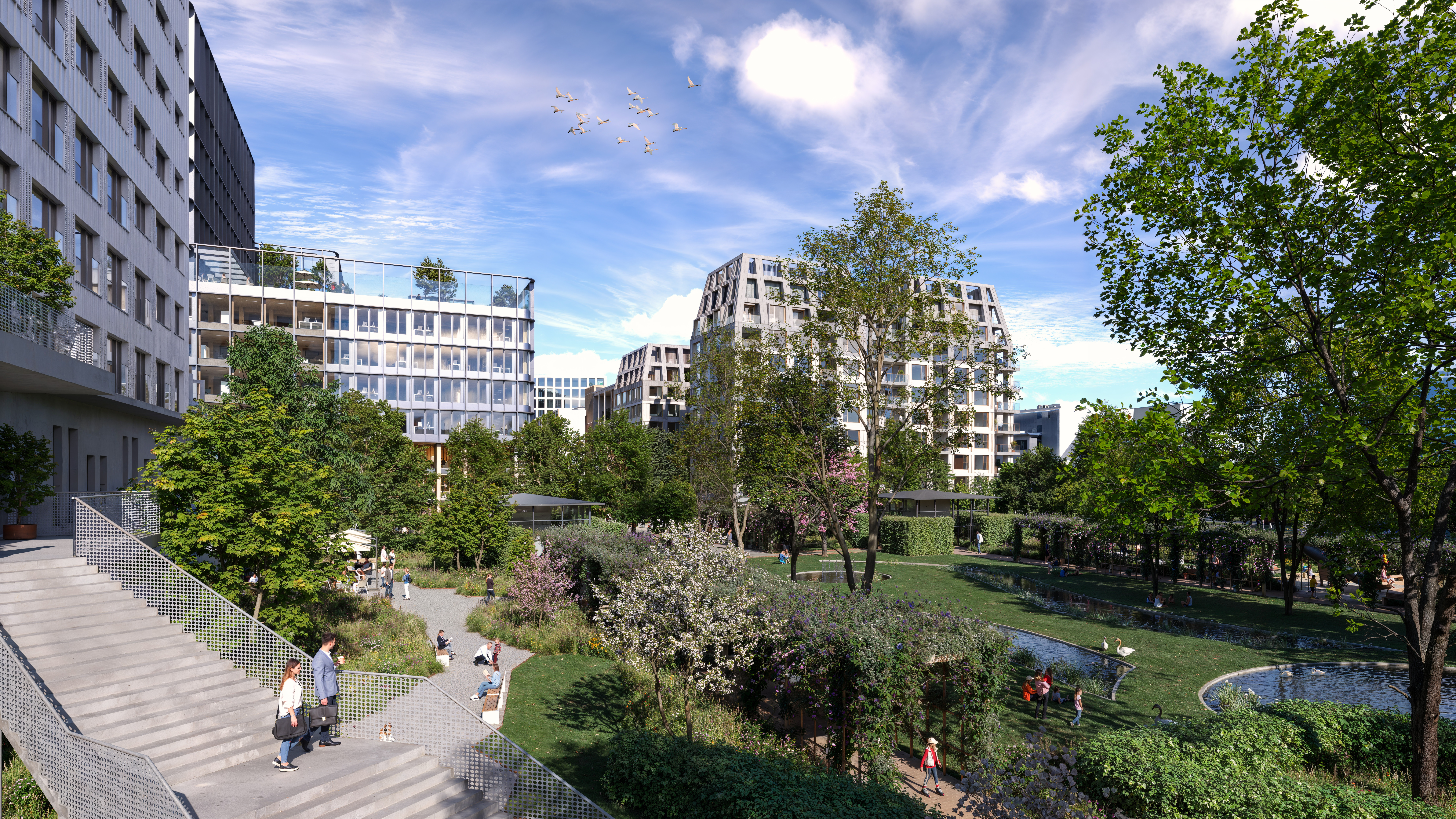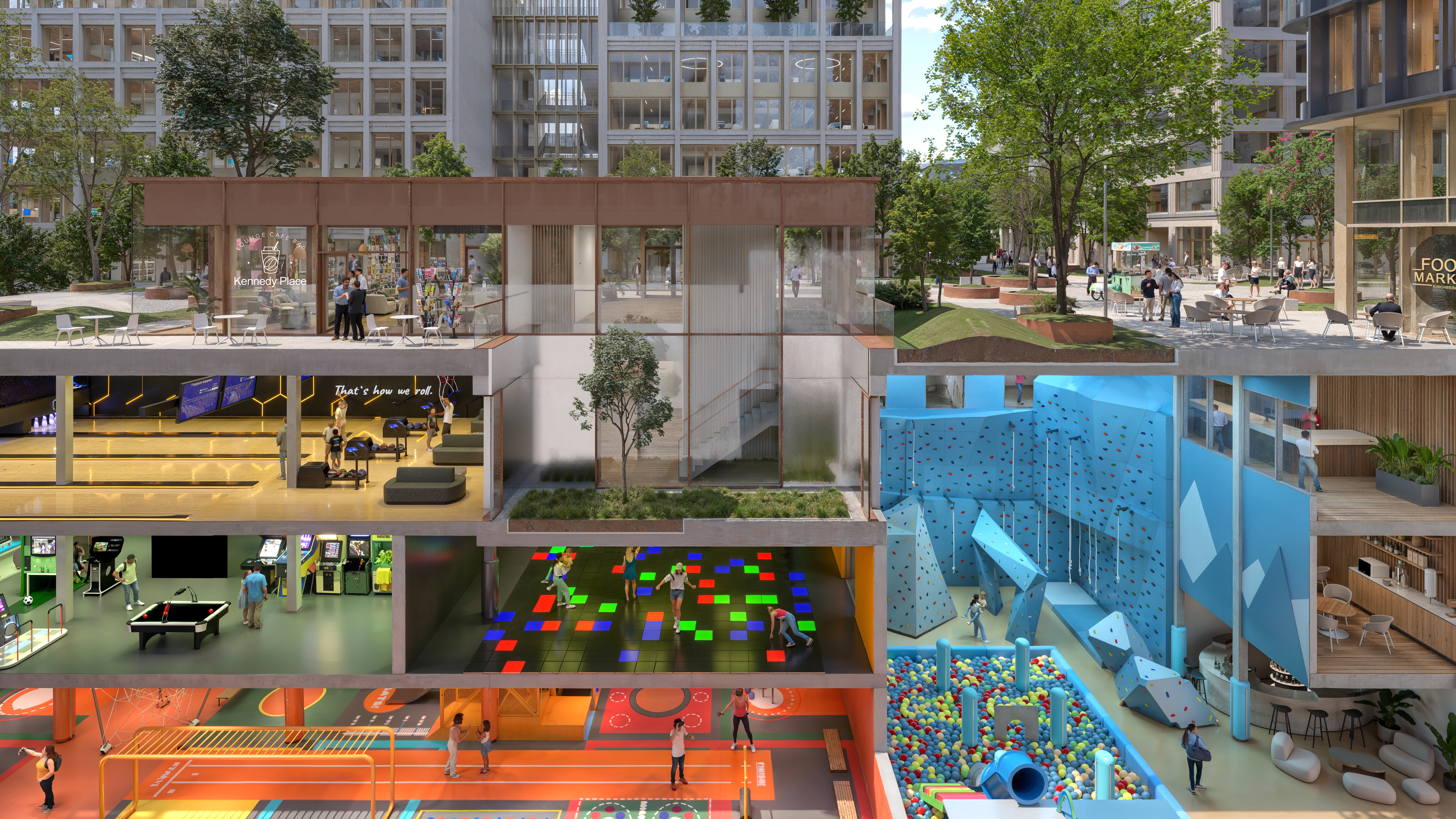 “Door een iconische site te transformeren tot een open, gemengde en duurzame plek, luidt Kennedy Park een nieuwe fase in voor Kirchberg: een plateau waar mensen wonen en connecteren, en dat functioneert als een volwaardige stadswijk.“