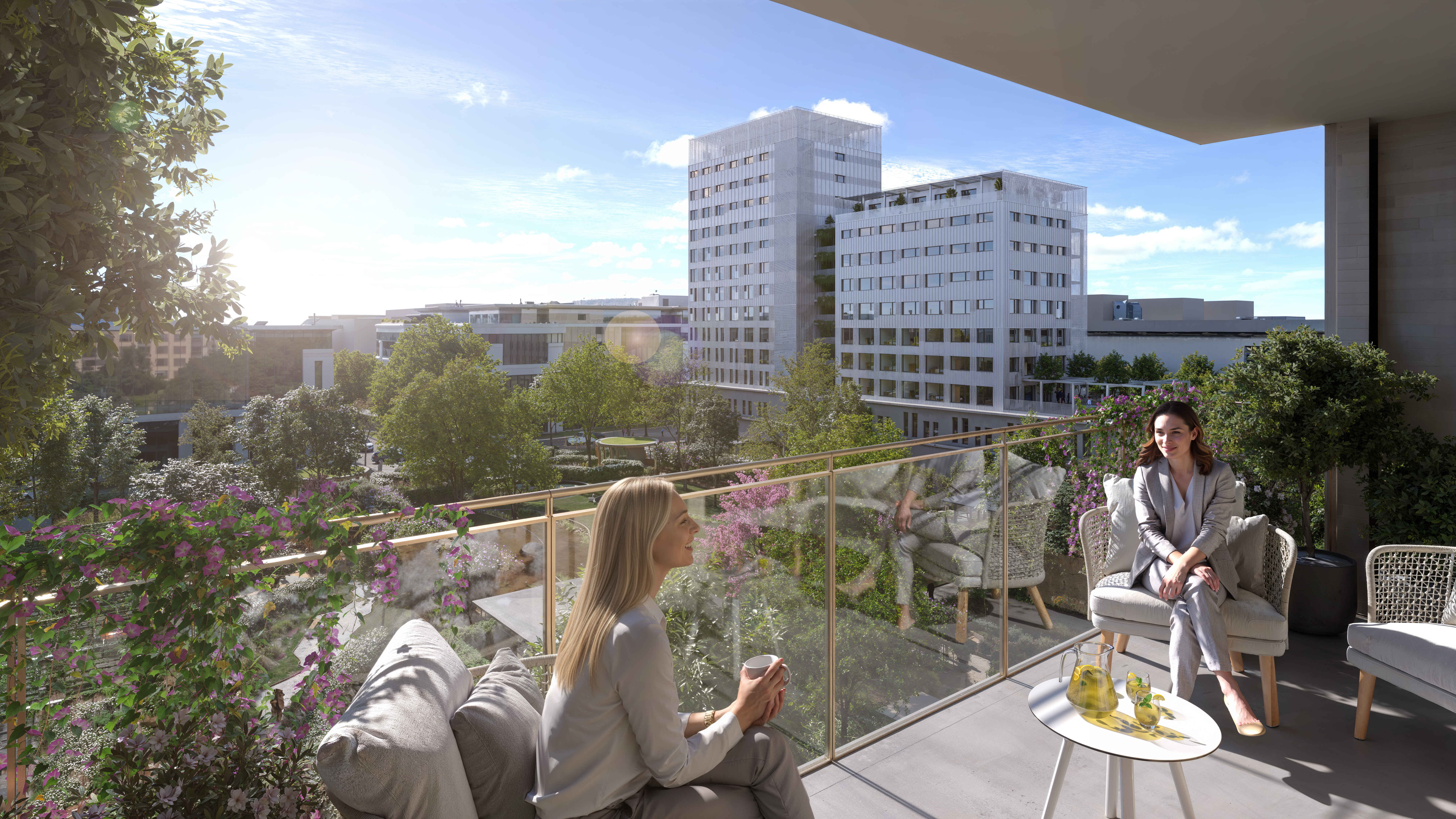 Naast hun unieke en onderscheidende architecturale karakter zijn de gevels ontworpen om het juiste evenwicht te vinden tussen maximale natuurlijke lichtinval en het vermijden van oververhitting in de zomer. De wijk omvat bovendien gekoelde eilanden, hangende tuinen en beplante terrassen met regenwateropvang, fotovoltaïsche productie en warmtepompen, om zo een AAA-energieprestatie te bereiken. De optimalisatie en uitvoering van de houtstructuren gebeuren door Wood Shapers, het interne studiebureau van het bedrijf.